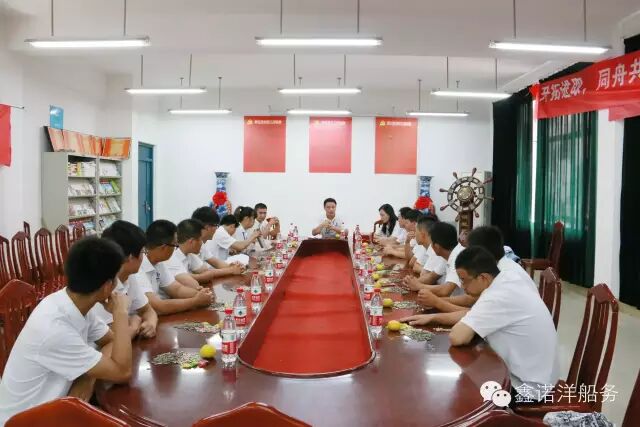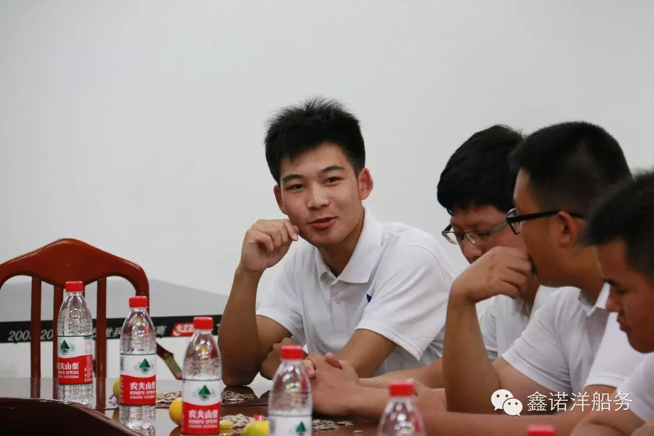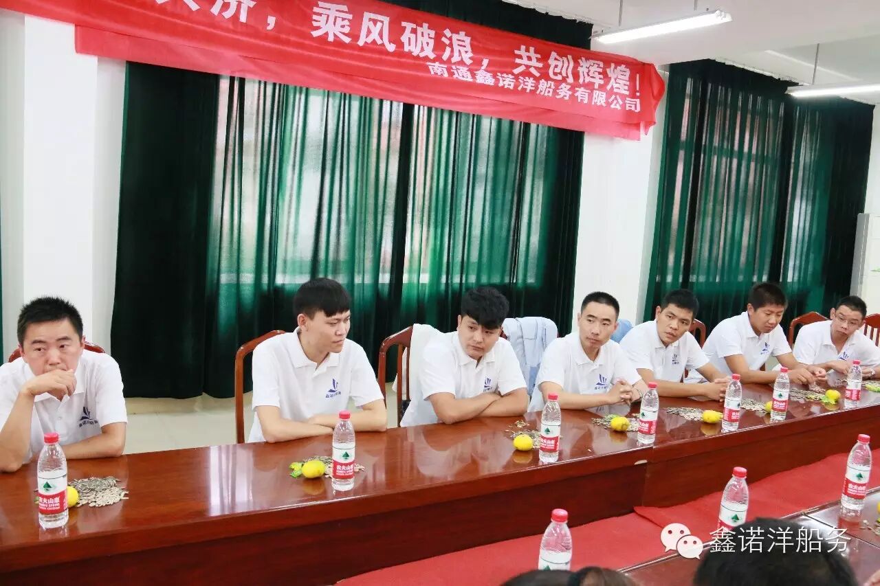 南通鑫诺洋的指导船长李俊、轮机长徐桂俊以及公司的三位主管,与公司的订单生、以及参加今年下半年大副/大管考试的签约船员齐聚南通航校航海楼,举行了一场新学期入校小型茶话会。